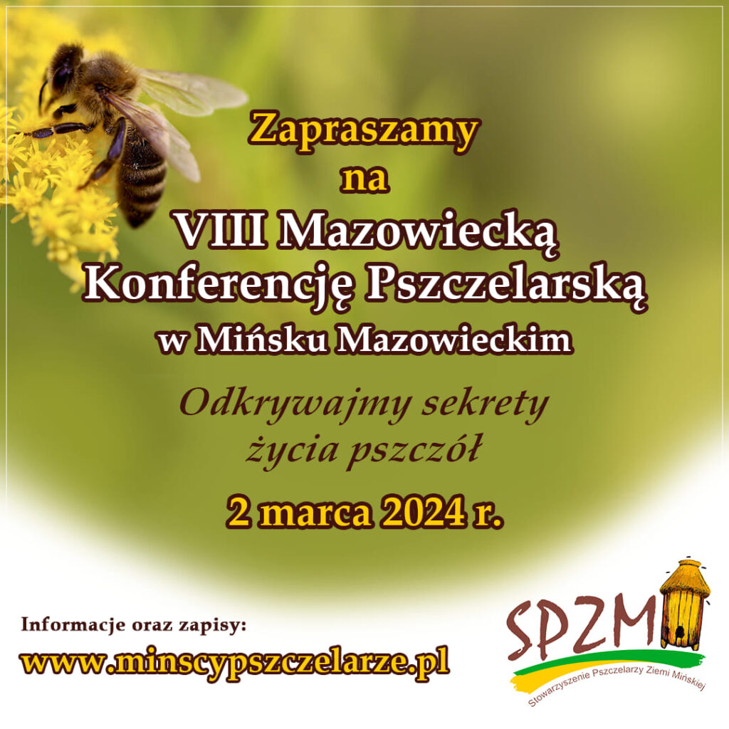 Już 2 marca będziemy mieli okazję udać się do Mińska Mazowieckiego na Konferencję Pszczelarską. W imieniu SPZM serdecznie zapraszamy!